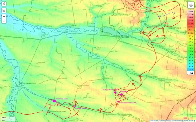 Поэтому наше продвижение идет довольно медленно. Вчера было только небольшое продвижение вперед севернее Пречистовки. Таким образом мы расширяем плацдарм западнее Угледара и пытаемся выйти на Новоукраинку с целью охвата города).
