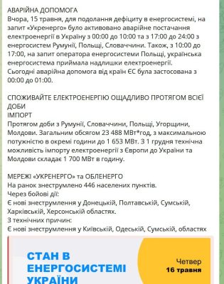 Вчера на пиках импорт ээ из Европы составил 1 653 МВт из 1700 МВт теоретически возможных. И все равно целый день на подконтрольной Киеву территории выключали рубильник.