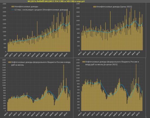 Ненефтегазовые доходы выросли на 19.7% г/г до 10.3 трлн руб, а относительно 2021 рост на 16.3% (это ниже накопленной инфляции в 20% за два года) за первые семь месяцев.
