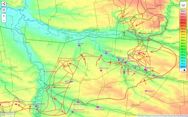 Именно здесь мы сейчас давим. И именно здесь у нас есть успехи. Фронт постепенно сдвигается на север к н.п. Разлив и Сухие Ялы.