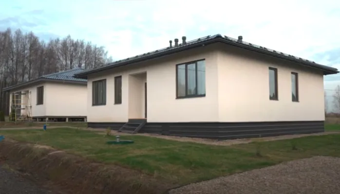 Во-вторых, привело к уменьшению размеров квартир, превратив их по сути в скворечники, а дома в муравейники. Где воспитывать детей нереально от слова совсем. Что и вылилось в т.ч. в обвал демографических показателей по стране. То есть многоквартирные дома при текущих условиях это крест на демографии страны и уничтожение России. А значит, только малоэтажная застройка. И других вариантов просто нет. При этом денежный ресурс, который уже сегодня можно использовать для покрытия расходов на жилье у семей с двумя детьми достигает почти 1 млн. рублей (материнский капитал). А в следствие последних поручений президента они могут вырасти (начиная с четвертого ребенка) на 450 тыс.р. за каждого. А отсюда переходим к постановке задачи — можно ли имея на руках 1 млн. рублей обзавестись хорошим жильем в месте, где можно найти достойную работу и растить семью с тремя и более детьми. Можно. Для начала о самом доме. Не буду предлагать конкретного решения (их достаточное количество). Просто приведу фото одного их них, который, с учетом специфики России, мне кажется одним из самых оптимальных. Дом, площадью 107 кв.м., с одним большим санузлом, тремя спальными и гостинной-кухней Более чем достаточен для проживания семьи с 2 детьми. В нем очень комфортно будет семье с тремя. В ценах 2025 года этот дом стоил — коробка (в зависимости от типа фундамента) с окнами и дверьми от 40 т.р/кв.м. Дом под ключ (в отделке на фото) от 70 тыс.р./кв.м.