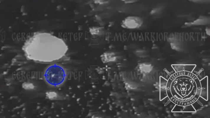 В Волчанске оператор разведывательного БпЛА запечатлел, как группа украинских фашистов перебралась через реку Волчья, однако меньше, чем через минуту, по ним прилетел снаряд артиллеристов ГВ «Север».