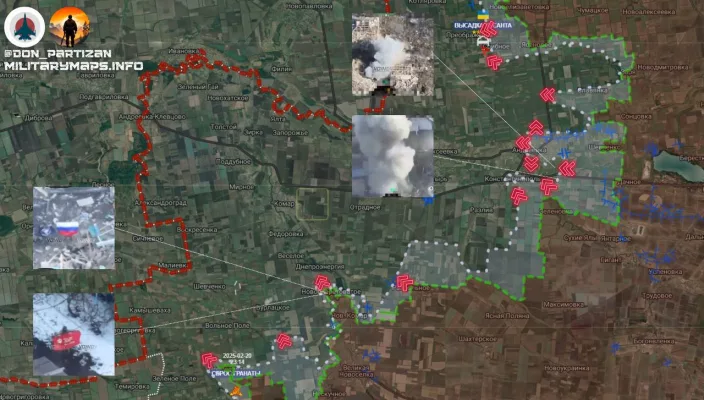 - Продолжаются интенсивные бои в Константинополе, где ВС РФ развивают наступление в южной части населённого пункта, оказывая огневое давление на позиции противника. В случае дальнейшего продвижения возможно тактическое окружение отдельных украинских подразделений.