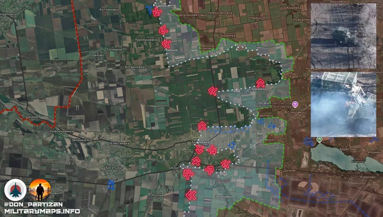 В районе Зеленовки российские подразделения продолжают расширение зоны оперативного контроля, развивая наступление в направлении Константинополя. Сохраняя высокий темп наступления и активно применяя ударные БПЛА и артиллерию, ВС РФ систематически подавляют огневые точки противника, вынуждая его к отступлению на менее выгодные рубежи.