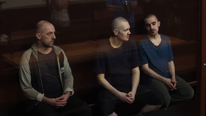 На судебном заседании присутствовали трое из девяти бандеровских боевиков, взятых в плен на «Азовстали».