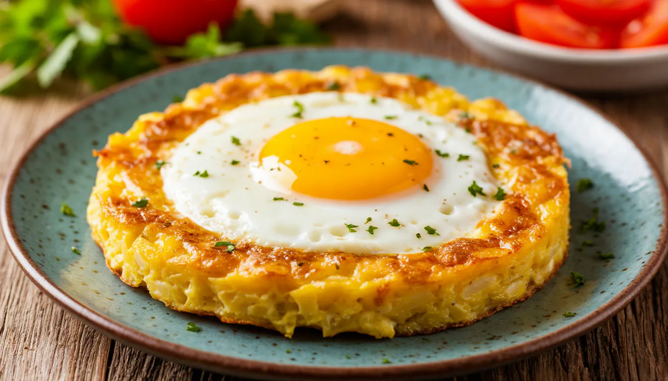 У меня есть простое решение: аппетитная картофельная лепёшка с хрустящей корочкой и яйцом-пашот сверху. Это легче, чем драники, и гораздо вкуснее простой яичницы. А главное — понадобятся всего три продукта, которые всегда можно найти в холодильнике.