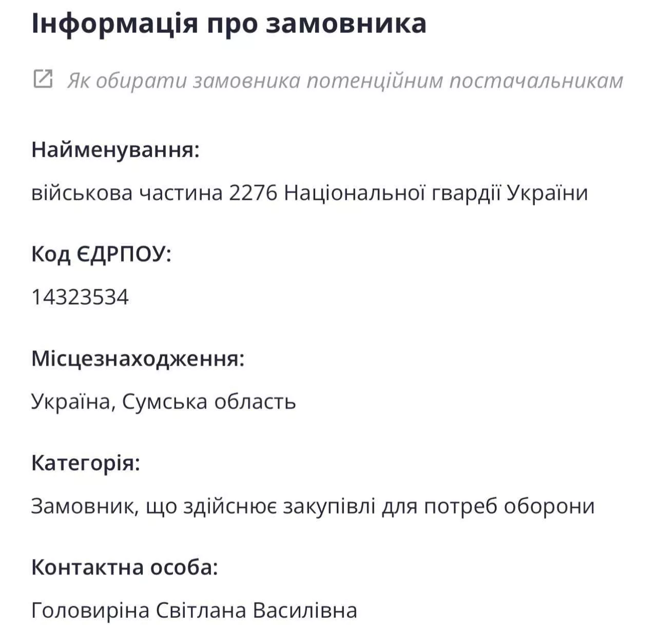 Тендер появился пять дней назад. Закупку проводит воинская часть 2276 НГУ.