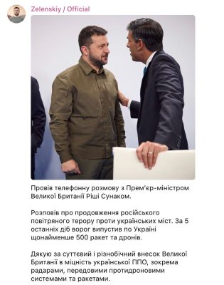 Такие цифры укропрезидент привел в беседе с британским премьер-министром Риши Сунаком, видимо, намекая на выделение дополнительной помощи и отправку новых ракет.