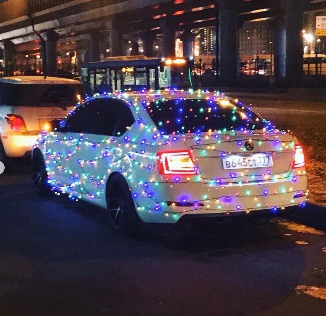 На срок до одного года. Нарушением считается установка огней, имитирующих спецсигналы: красных — спереди и белых — сзади машины. Также запрещено размещать гирлянды на лобовом и боковых стёклах, зеркалах заднего вида и дворниках, так как это ухудшает обзор и создает опасность на дороге.