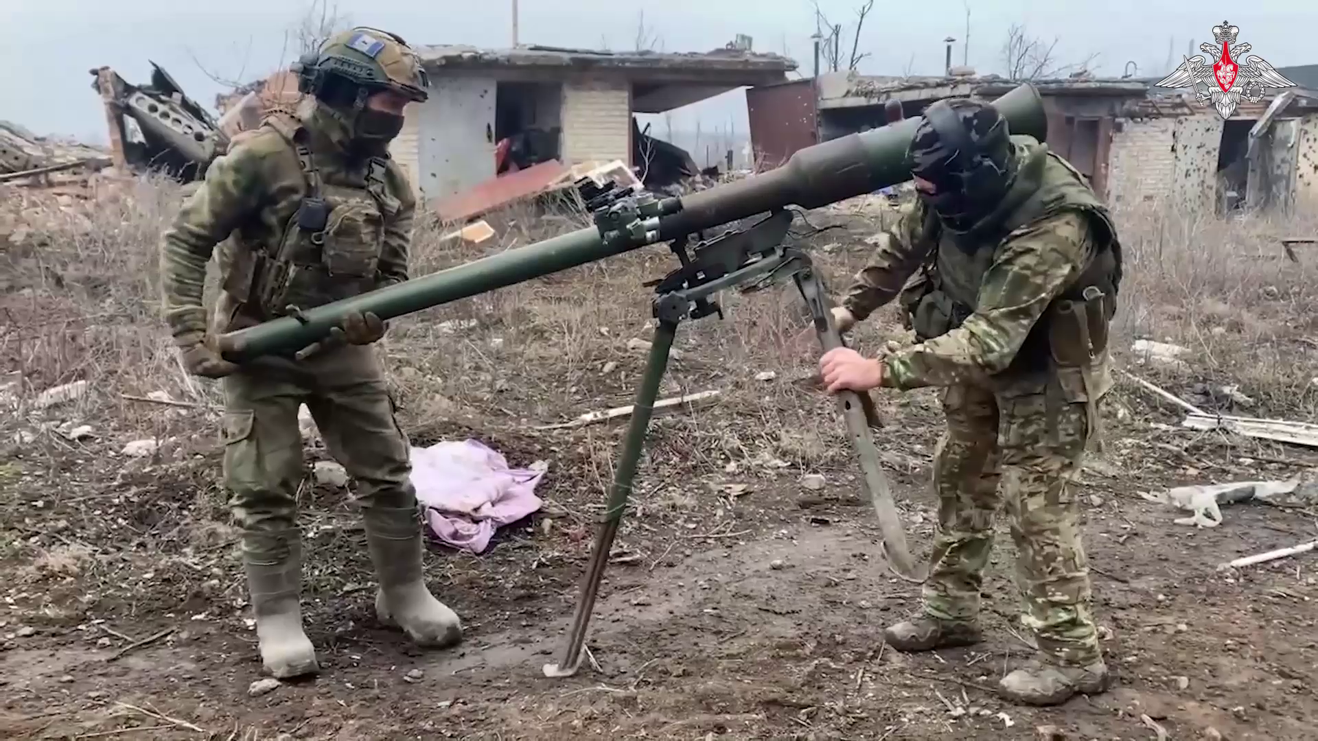Поддерживая активные действия штурмовых групп к западу от Красного, десантники активно применяют станковые противотанковые гранатомёты СПГ-9 «Копьё».