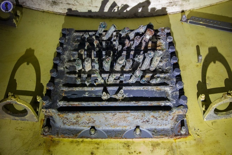 Кстати снаружи контейнера также располагались различные системы жизнеобеспечения, например этот «барабан» баллонов со сжатым воздухом для поддержания избыточного давления в пространстве между шахтой и контейнером.