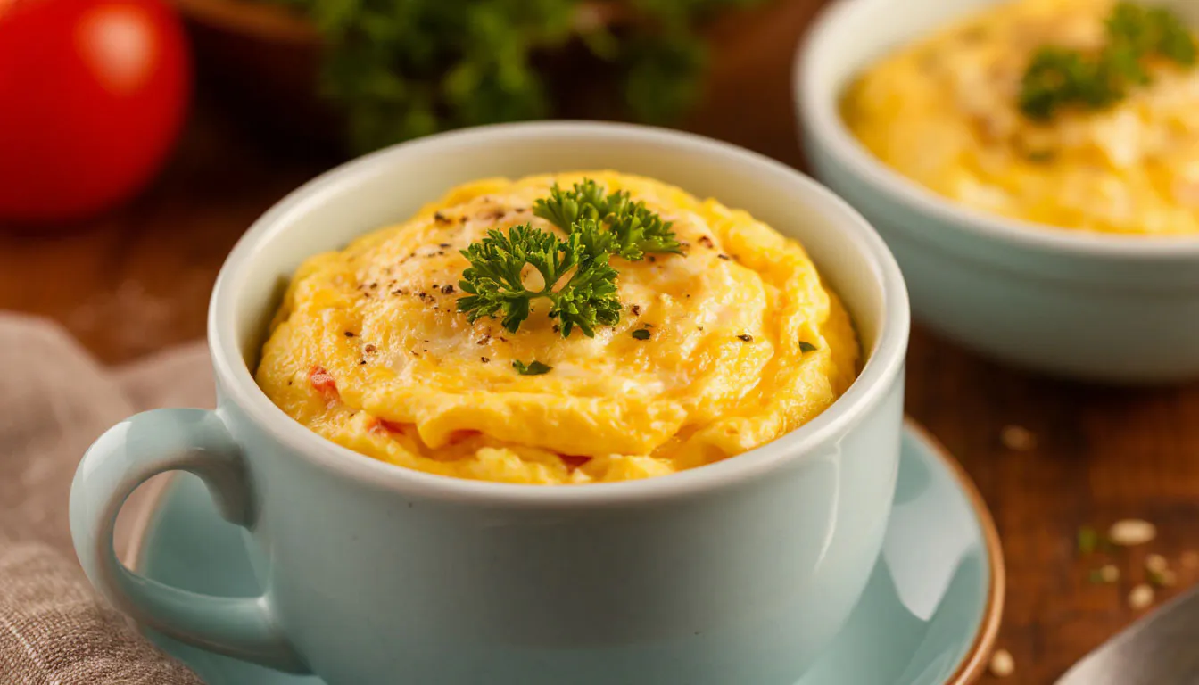 Не заполняйте кружку больше, чем на две трети. Омлет немного поднимается.