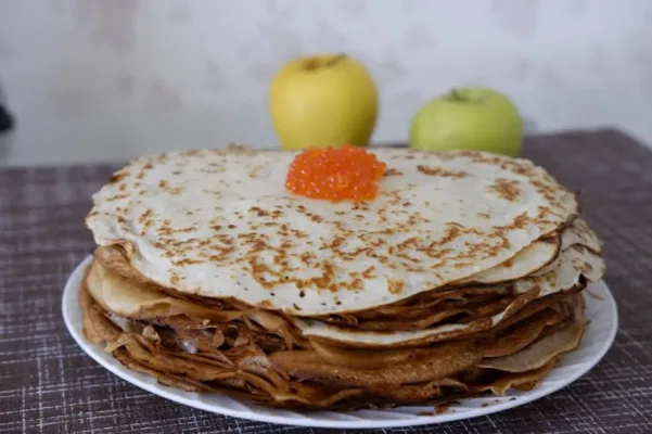 Блины получаются тонкими, с хрустящими краями и множеством дырочек. Они не рвутся, не комкуются и не прилипают. В них можно завернуть любую начинку — от икры до творога. Или просто наслаждаться ими, макая в сметану или растопленное масло