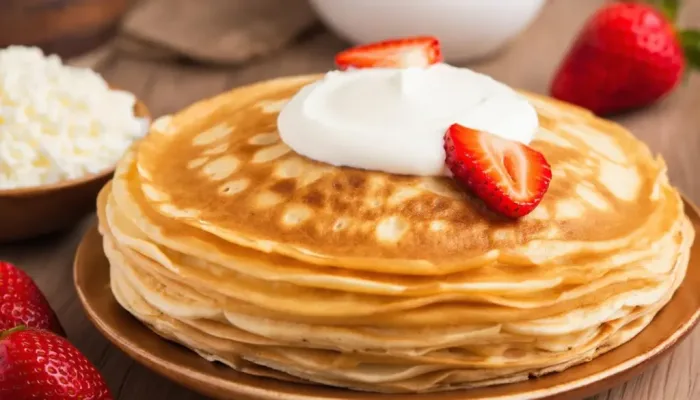 Блин получится толщиной примерно с палец, пышным и пористым, он не рвется при сгибании и отлично удерживает начинку