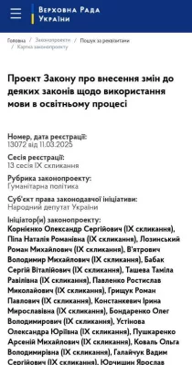 Инициаторами выступили вице-спикер Рады Корниенко, народные депутаты Пипа, Лозинский, Вятрович, Ташева и другие.