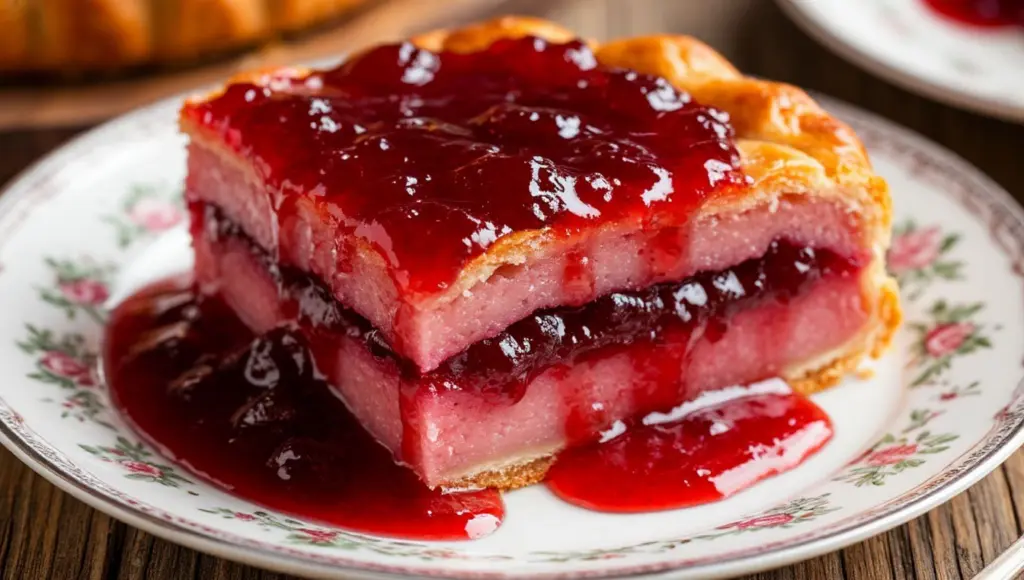Вся суть в загустении первого слоя. Когда тесто частично пропекается до добавления начинки, оно образует твёрдую корочку. Варенье просто не может провалиться сквозь неё.