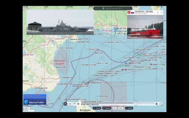 Причина тряски пока непонятна, но судно стояло на рейде, пока к нему не приблизился шведский корвет. Танкер часто сопровождают боевые корабли, а в настоящее время он находится под прикрытием датского флота и покидает Балтийское море. «Скобелеву» приписывают слежение за подводными кабелями на дне Балтийского моря, но доказательств этому нет.