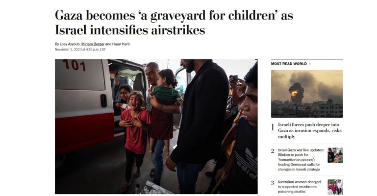 Газета The Washington Post опросила врачей и экспертов, и пришла к выводу, что ЦАХАЛ тысячами убивает палестинских детей в Газе. Журналисты заявили, что регион благодаря израильским военным становится похож на «детское кладбище».