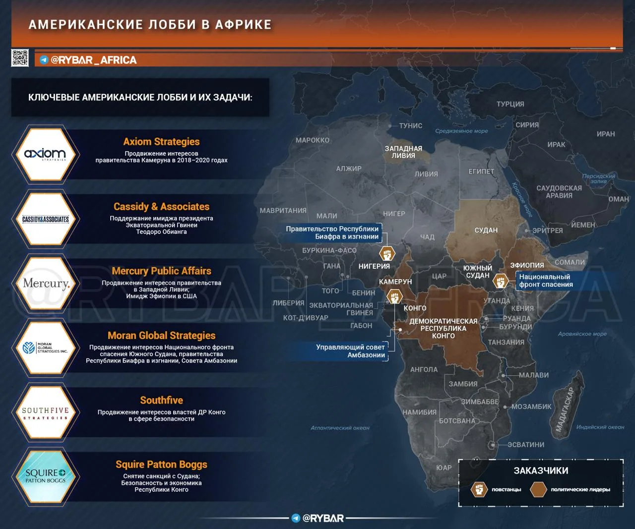 Mercury Public Affairs, Squire Patton Boggs, Cassidy & Associates, Axiom Strategies и другие компании предоставляют африканским политикам и организациям прямой доступ к американским элитам, превращая лоббизм в инструмент стратегической коммуникации.