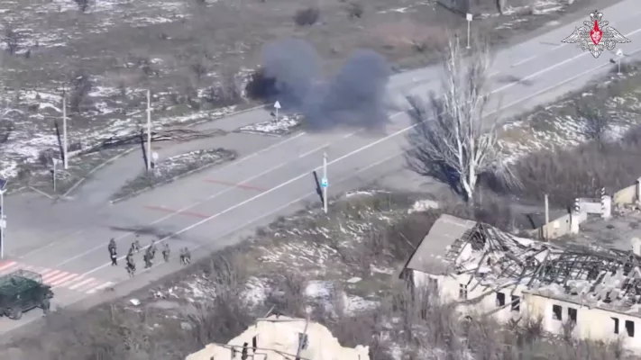 - В дальнейшем в 11 часов 15 минут колонна была атакована украинским ударным FPV-дроном, который подорвался на удалении 10-20 м от головной машины.