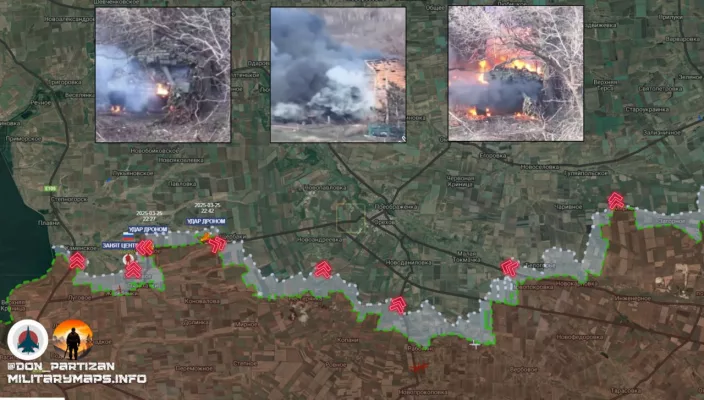 - Силы ВС РФ закрепились вдоль лесополосы южнее Степового и штурмуют его восточную и западную части. Эти действия направлены на ослабление позиций ВСУ в этом районе, где российские войска активно используют штурмовые подразделения и артиллерию для дальнейшего давления на оборону противника.