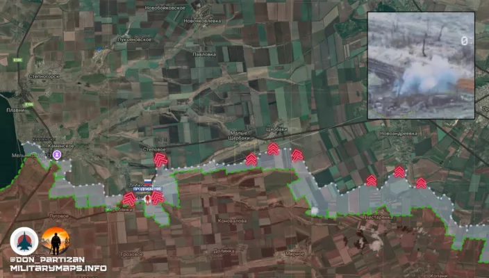 Подразделения ВС РФ продолжают развивать наступление в направлении Новоандриевки, а также ведут бои в районах Малых Щербаков и Степового. В этих зонах российские войска методично продавливают позиции противника, создавая угрозу дальнейшего продвижения к стратегическим узлам снабжения ВСУ.