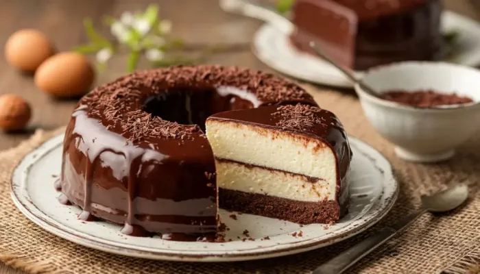 Этот шоколадный слойный торт — именно то, что вам нужно. Он сочетает в себе хрустящую глазурь, легкое кремовое суфле и плотную шоколадную основу, при этом вам не придется включать духовку.
