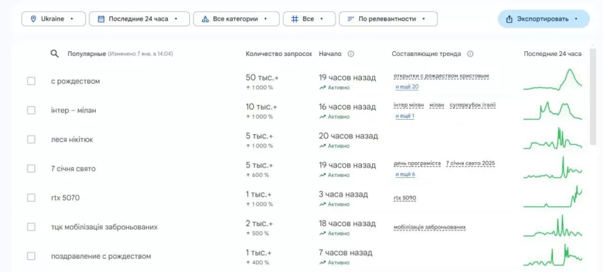 Напомним, с 2023 года Зеленский перенёс праздник на 25 декабря, как на Западе. Несмотря на это, в прошлом году на Украине также искали новости о праздновании Рождества 7 января.