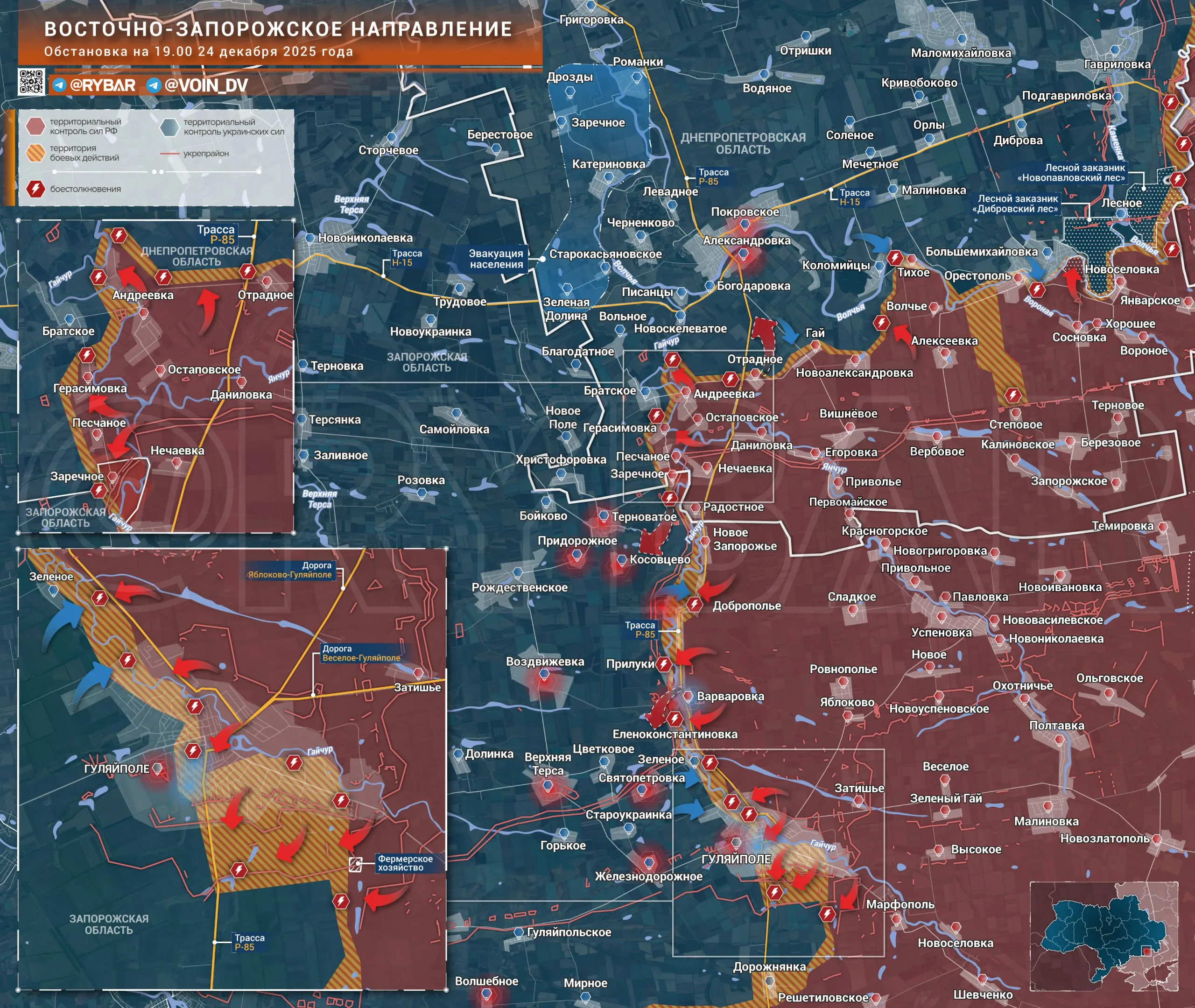 Параллельно обостряется ситуация вокруг Гуляйполя. Битва за город входит в решающую фазу: ВСУ уже перебросили на участок большинство боеспособных штурмовых подразделений, что подчёркивает не только символическое, но и тактическое значение для командования противника.