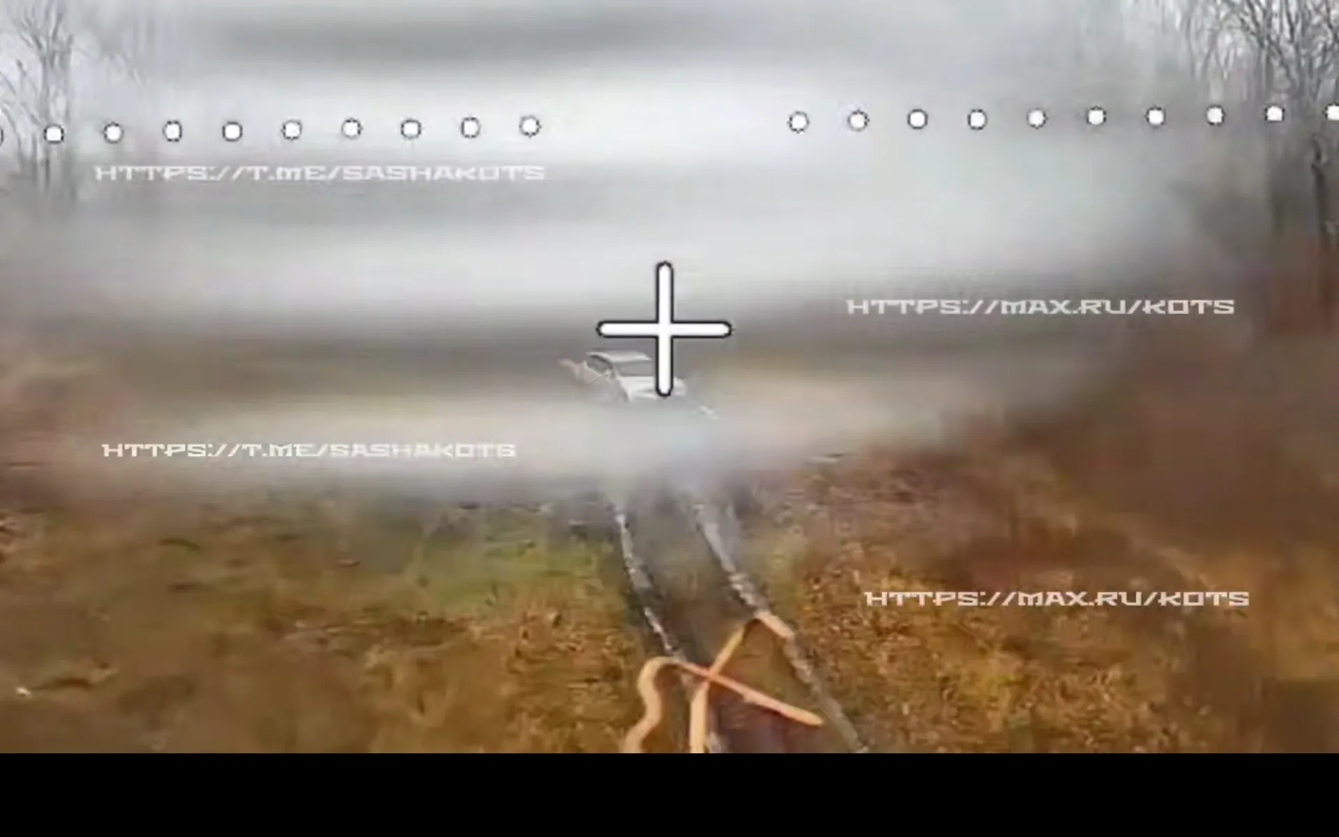 На кадрах видео – поражение двух автомобилей. Первый – внедорожник Mitsubishi L200 – сам подставился под удар. Машина увязла в грязи, водитель и пассажиры ее бросили. Второй пикап попытался укрыться от дронов в здании, но это его не спасло. FPV-шка совершила элегантный маневр и, залетев под крышу, уверенно влупила внедорожнику в борт. А ее товарка, минуты спустя, нанесла контрольный удар.