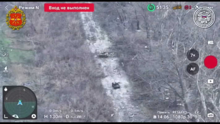 «Курьер» с боевым модулем НСВТ 12,7 отработал по опорному пункту противника, под прикрытием еще одного НРТК «Курьер» с комплексом РЭБ.