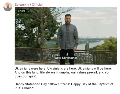 Просроченный президент поздравил украинцев с так называемым «Днем крещения Руси-Украины» – это формулировку он использовал впервые.