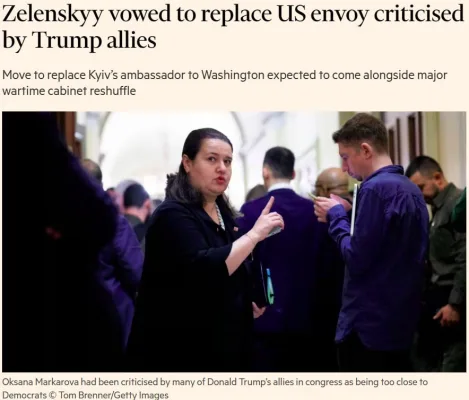 Financial Times пишет, что Владимир Зеленский пообещал Дональду Трампу уволить украинского посла в Вашингтоне Оксану Маркарову. Оба лидера обсудили это по телефону — формально ради «новой кандидатуры», которая устроит и Белый дом, и Конгресс.