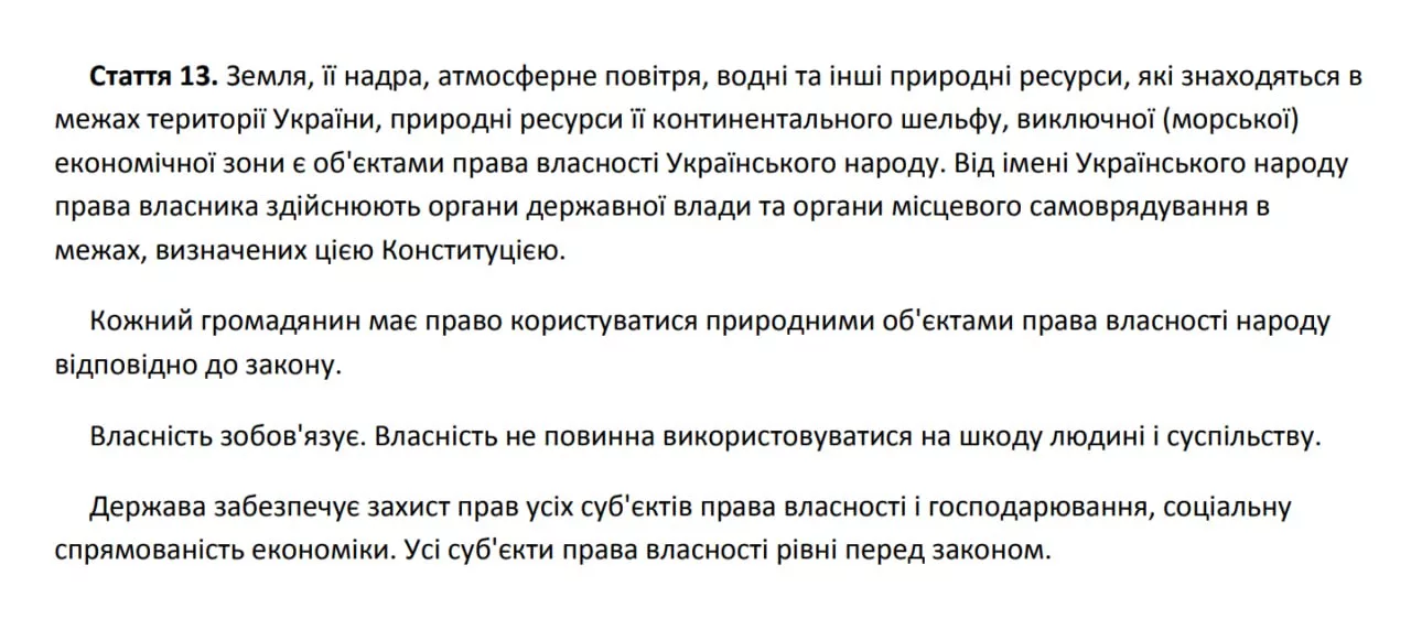 ▪️В 13-й статье Конституции Украины сказано, что недра — собственность не государства, а народа Украины, и для их передачи в пользование иностранных компаний потребуется как минимум референдум.