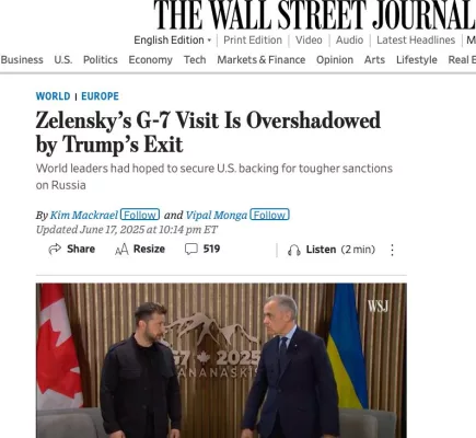 Просроченный украинский президент покинул саммит G7 в Канаде, так и не получив той поддержки, на которую надеялся. The Wall Street Journal пишет, что визит украинского президента оказался смазанным – главным образом потому, что Трамп улетел раньше.