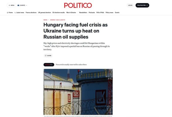 ⚫️ Венгрии грозит топливный кризис из-за того, что Украина перекрыла транзит российской нефти, пишет Politico.