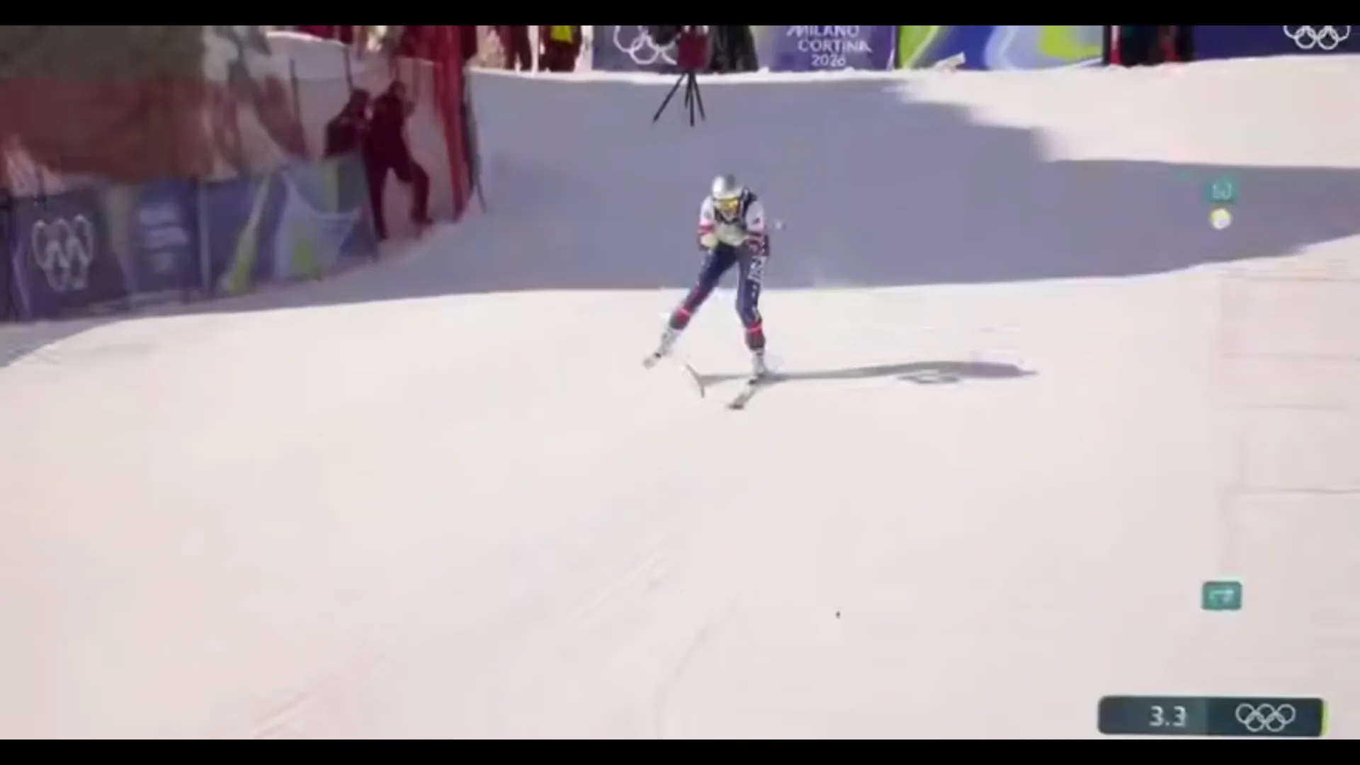 На 13-й секунде спуска она упала и сломала левую ногу.