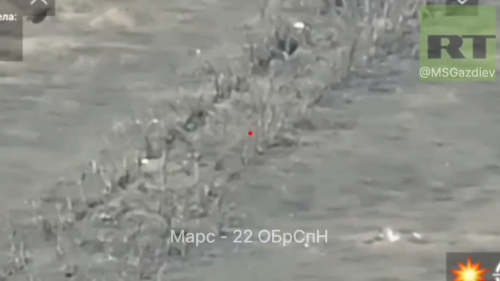Дрон-камикадзе с термобарическим боеприпасом разрывает группу пехоты и блиндаж ВСУ.