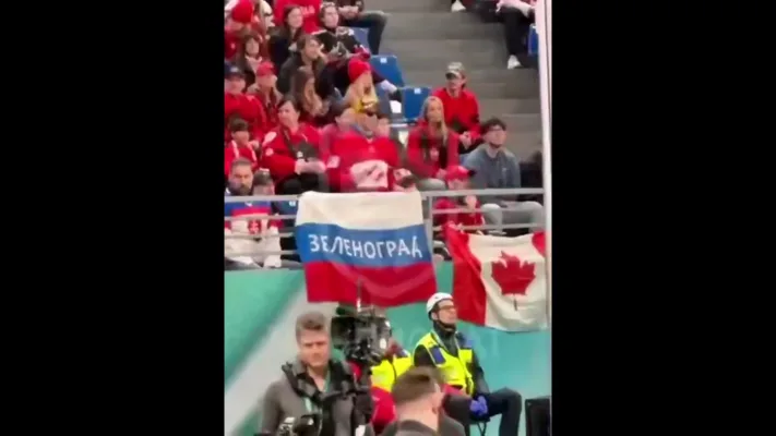 Мужчина вывесил его на трибуне во время хоккейного матча Канада — Чехия. Позднее его всё же попросили убрать флаг.