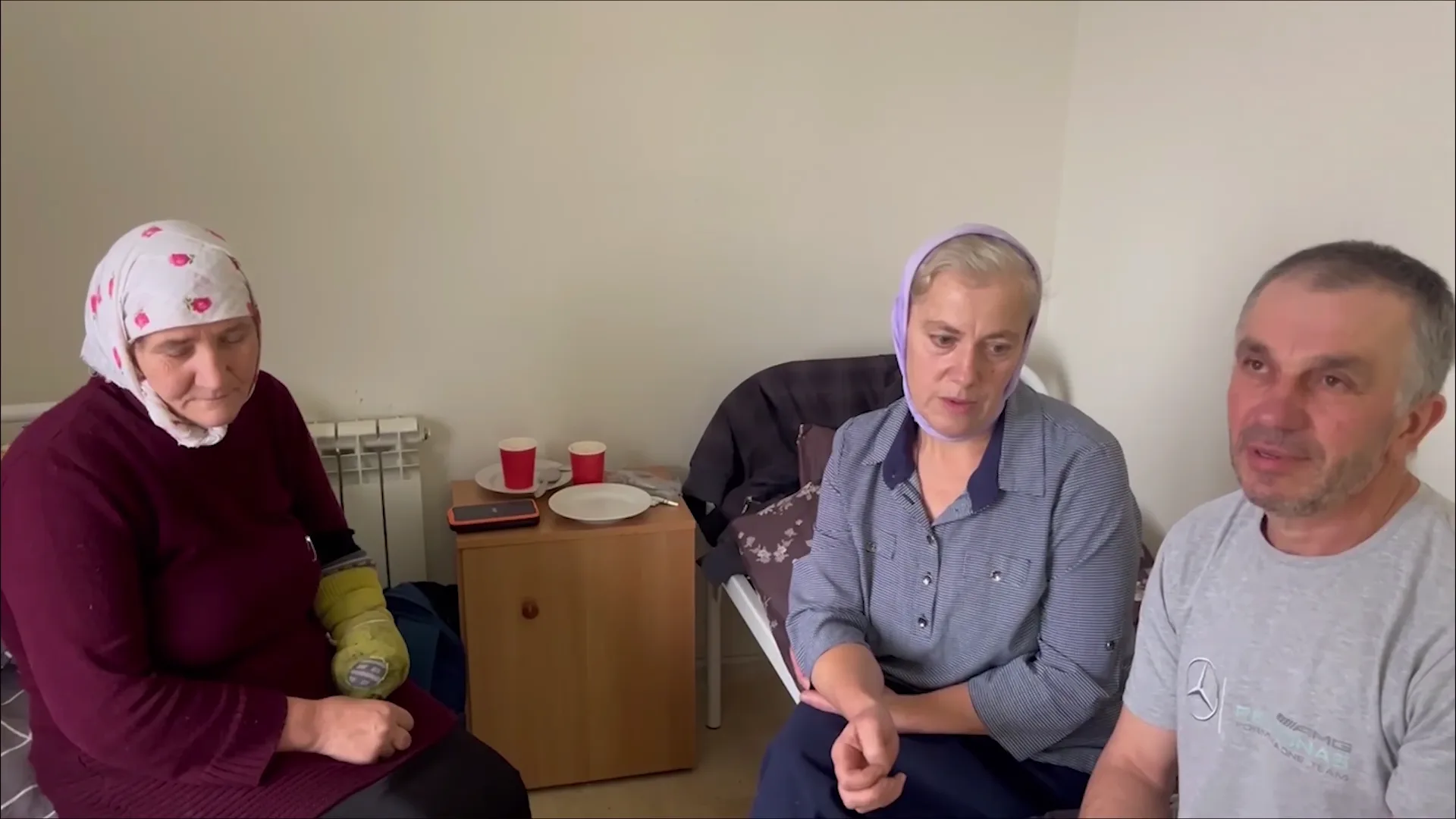 Иван: «До нас дошли ваши ребята и сказали, чтобы мы спустились в подвал ради нашей безопасности. Мы спустились, но даже в подвале все ходуном ходило во время обстрела. Ночью нас подняли в дом, мы переночевали. Ваши все время были с нами. На следующий день снова спустились в подвал. Позже пришли солдаты — «Быстренько-быстренько пошли, пока тихо. И мы пошли. Никто нас не обижал, относились очень хорошо. Сегодня за медициной обратились, нам измерили давление, выдали лекарства». Наталья Чумачевко: