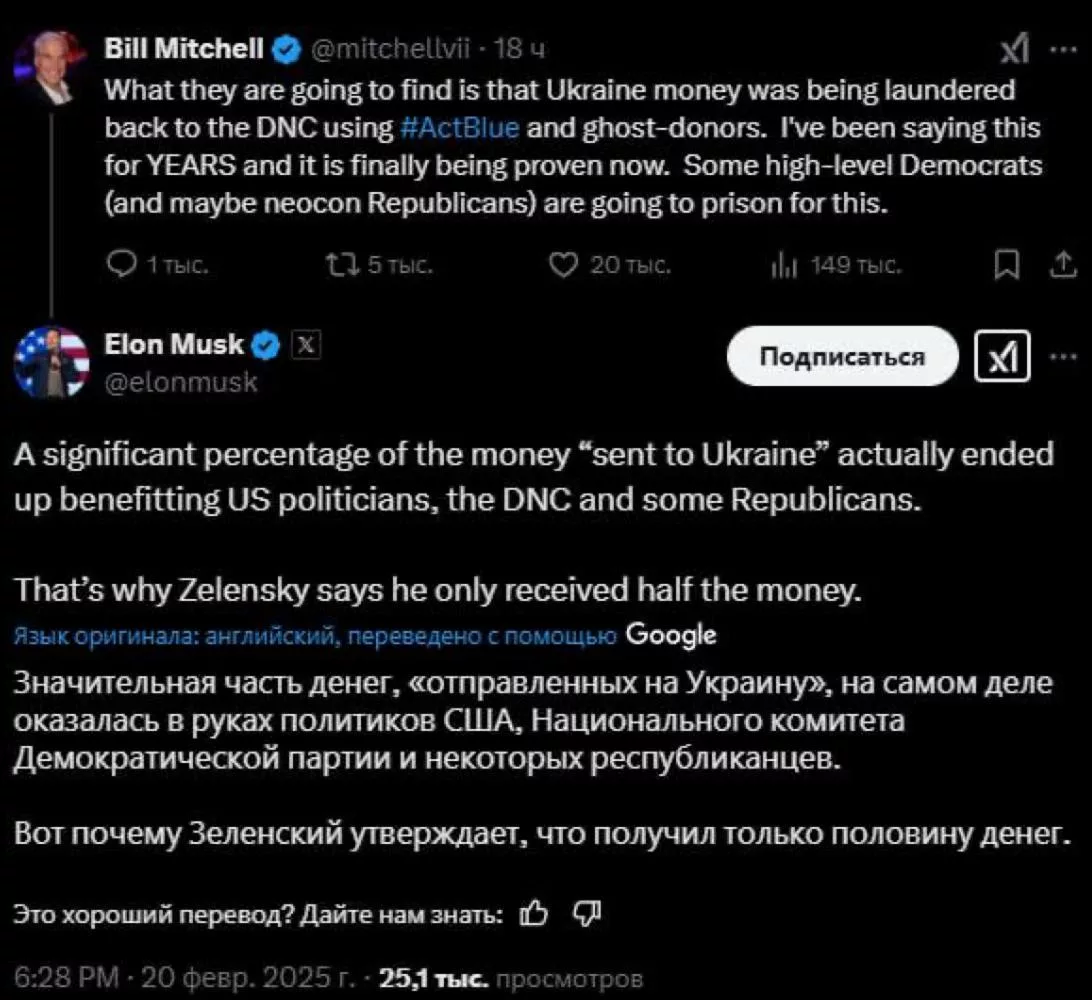 «Вот почему Зеленский утверждает, что получил только половину денег», — написал помощник Трампа.