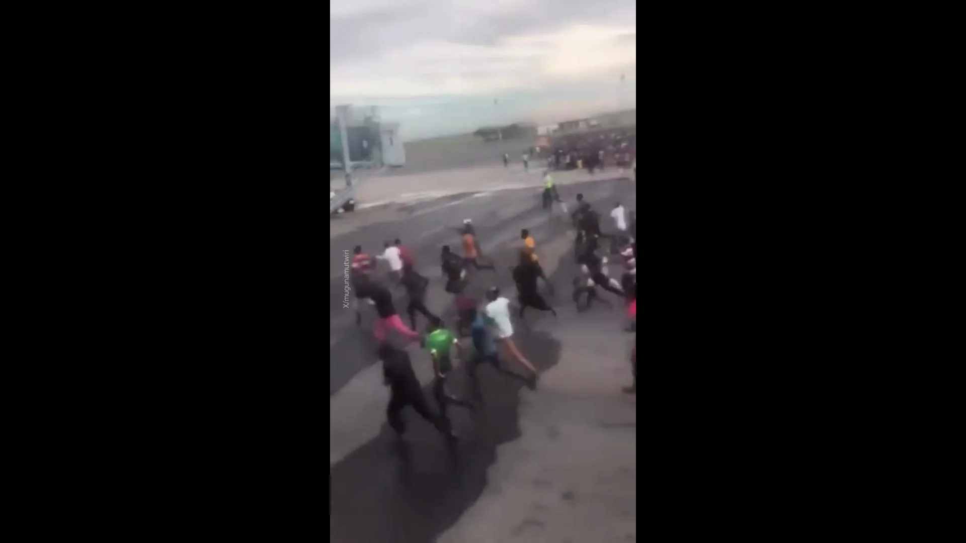 На первом видео сотни протестующих прорвались на взлетно-посадочную полосу и бегут к зданию авиагавани. Такие масштабные протесты разгорелись на фоне проведения в стране выборов. Митингующие считают, что они сфальсифицированы.